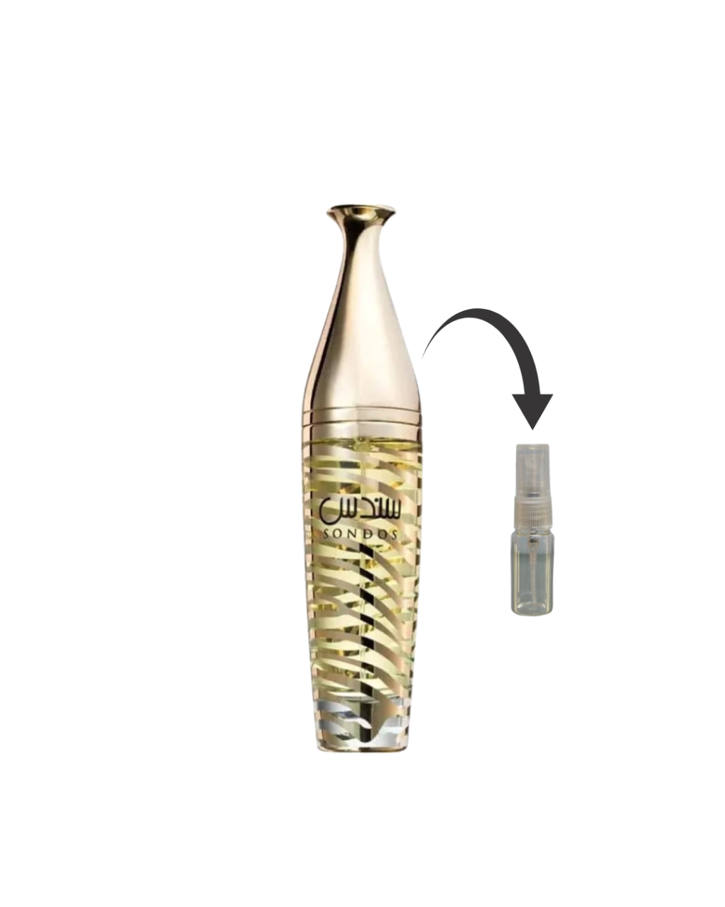 Sondos de Lattafa Perfumes é um perfume Compartilhável. Esta é uma nova fragrância. Sondos foi lançada em 2023. O perfumista que assina esta fragrância é Alex Lee. As notas de topo são: Mandarina e Açafrão. As notas de coração são: Tuberosa, Flor de Pêssego e Rosa. As notas de fundo são: Baunilha, Camurça e Patchouli.